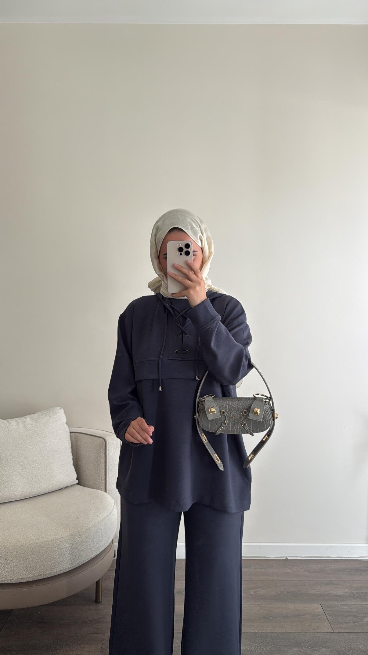 Bağcık Detaylı Eşofman Takımı - Lacivert