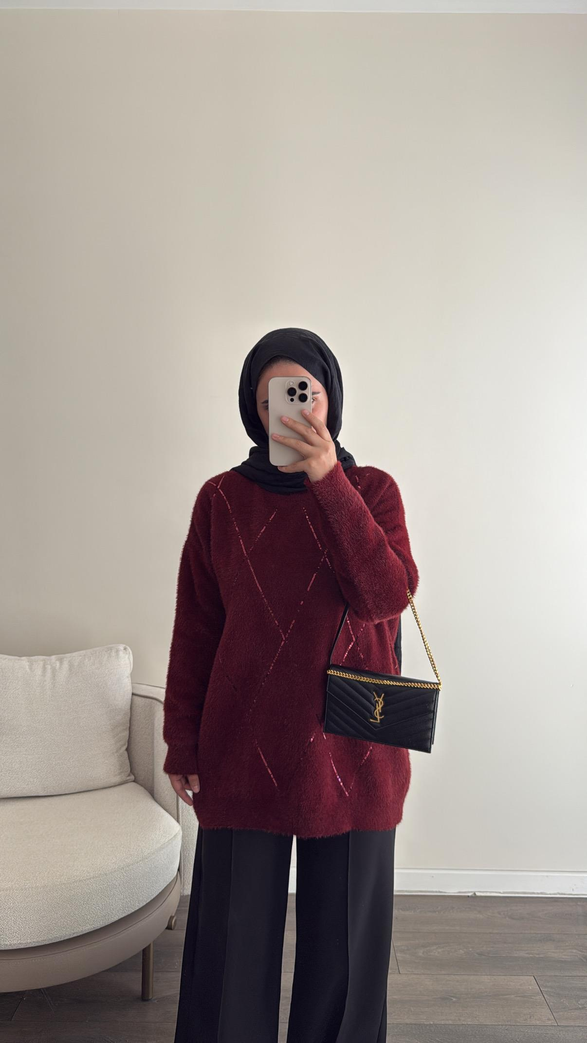 Baklava Desen Pullu Kazak - Bordo