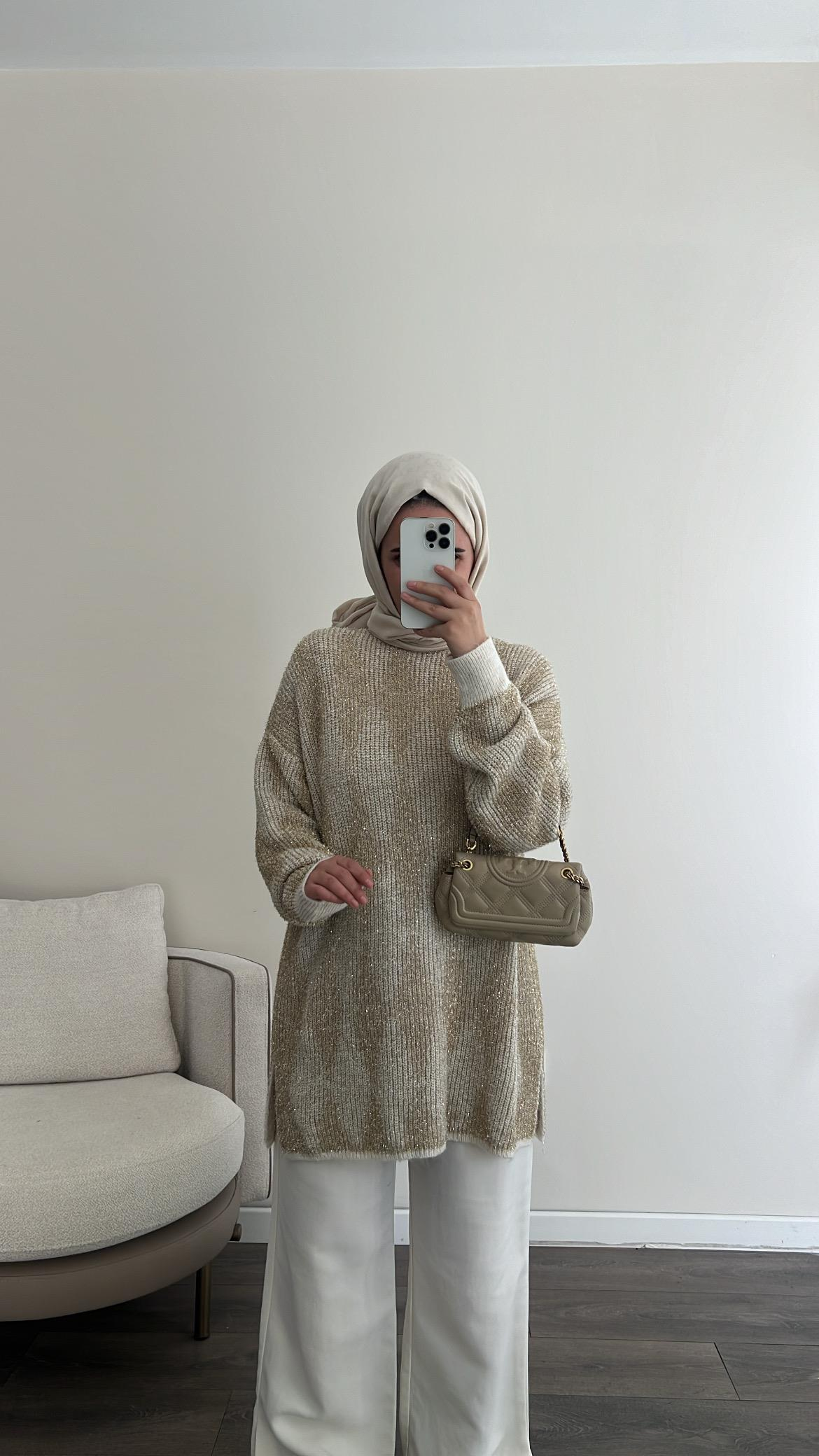 Baklava Desen Simli Kazak - Ekru