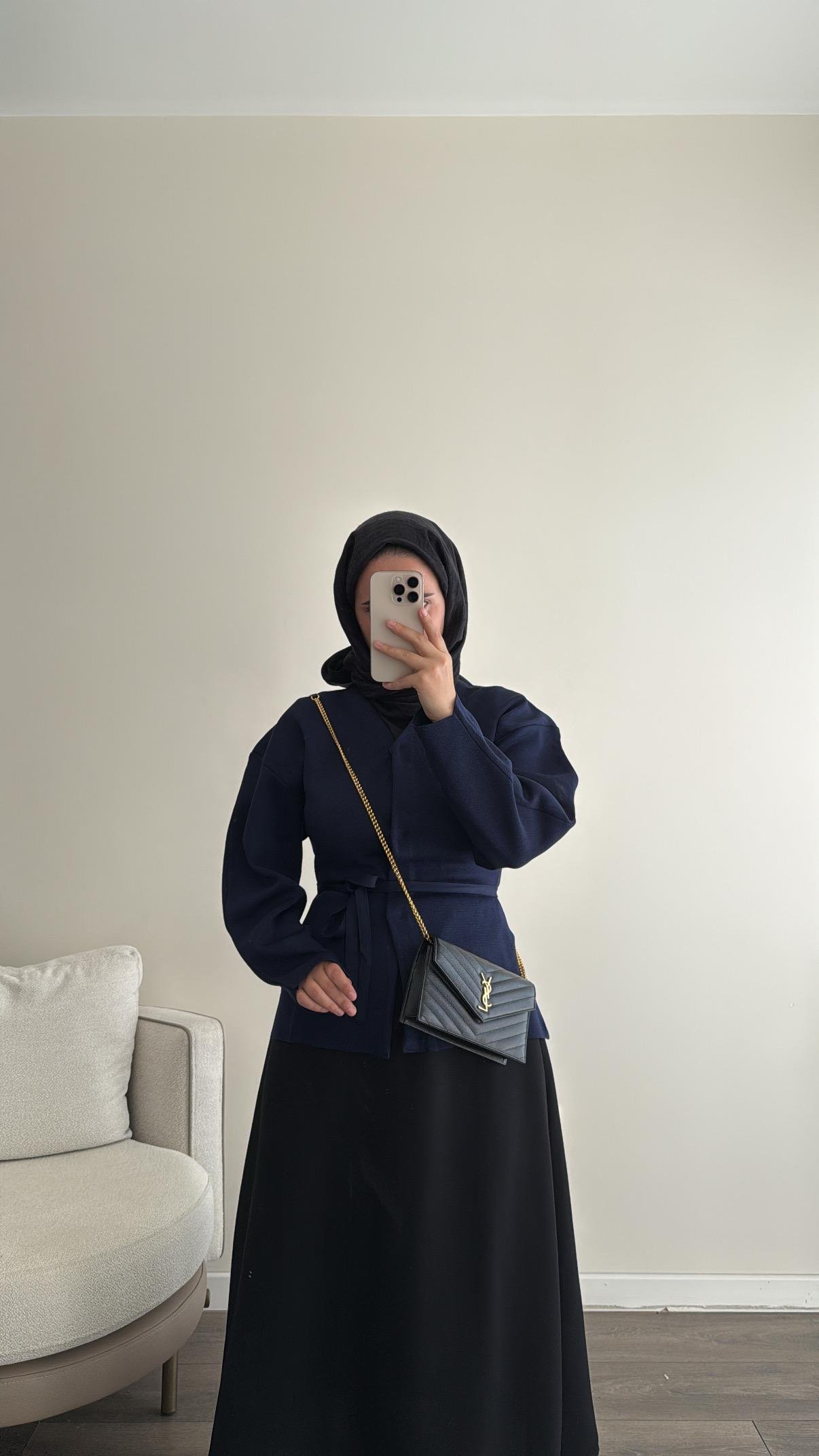 Belden Oturtmalı Merserize Hırka- Lacivert