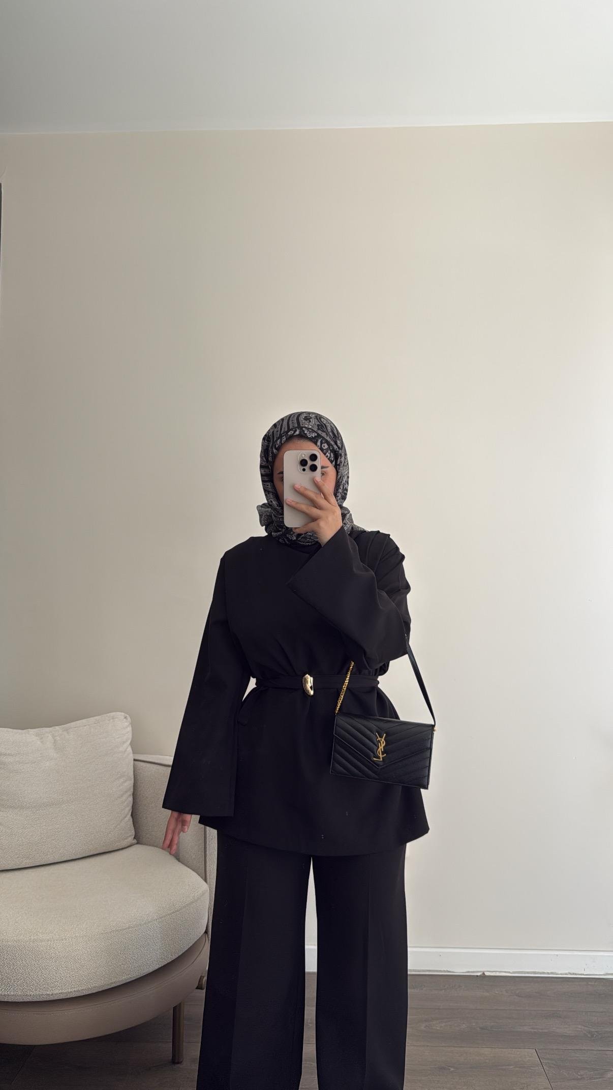 Gold Kemer Detaylı Siyah Pantolon Takım