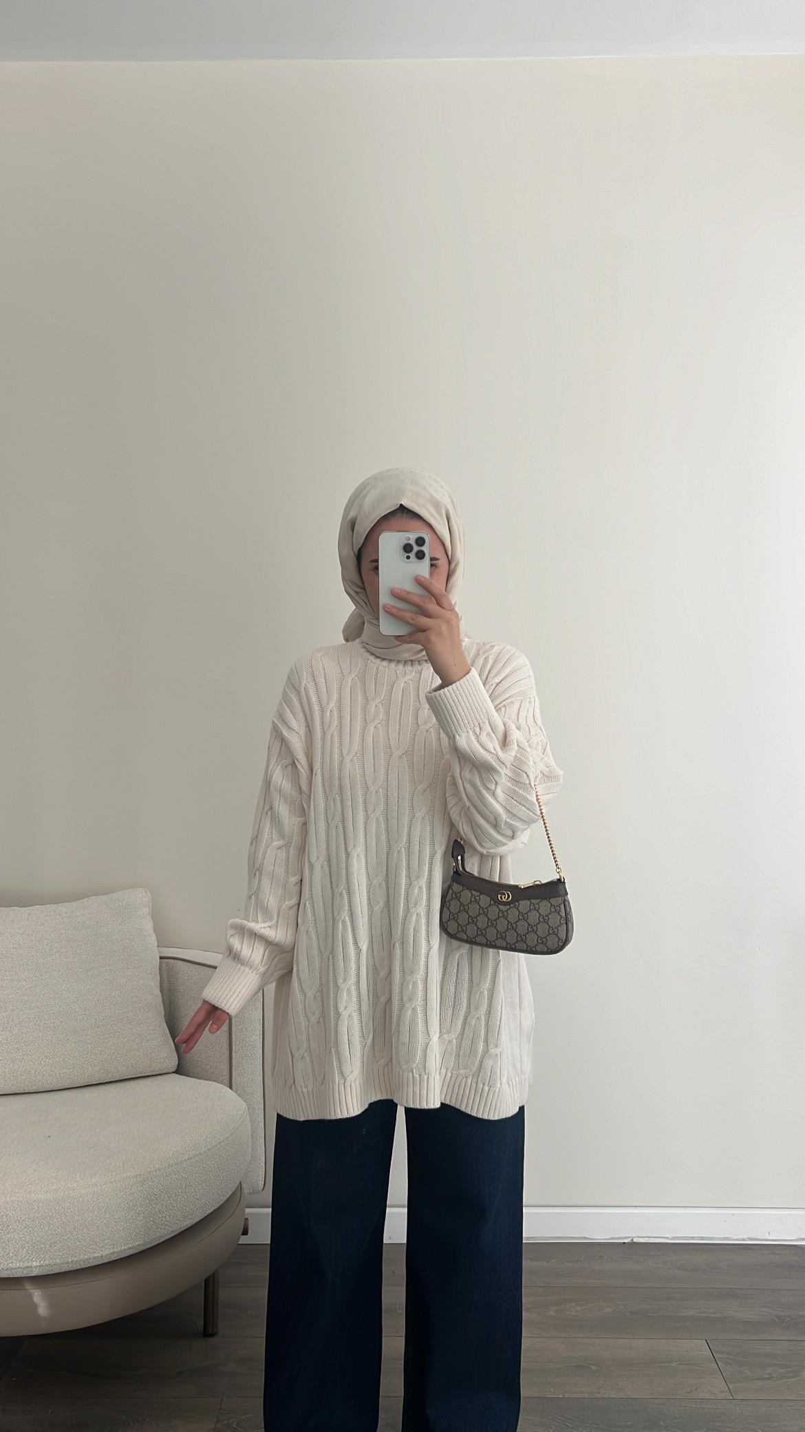 SAÇ ÖRGÜ TRİKO KAZAK - EKRU
