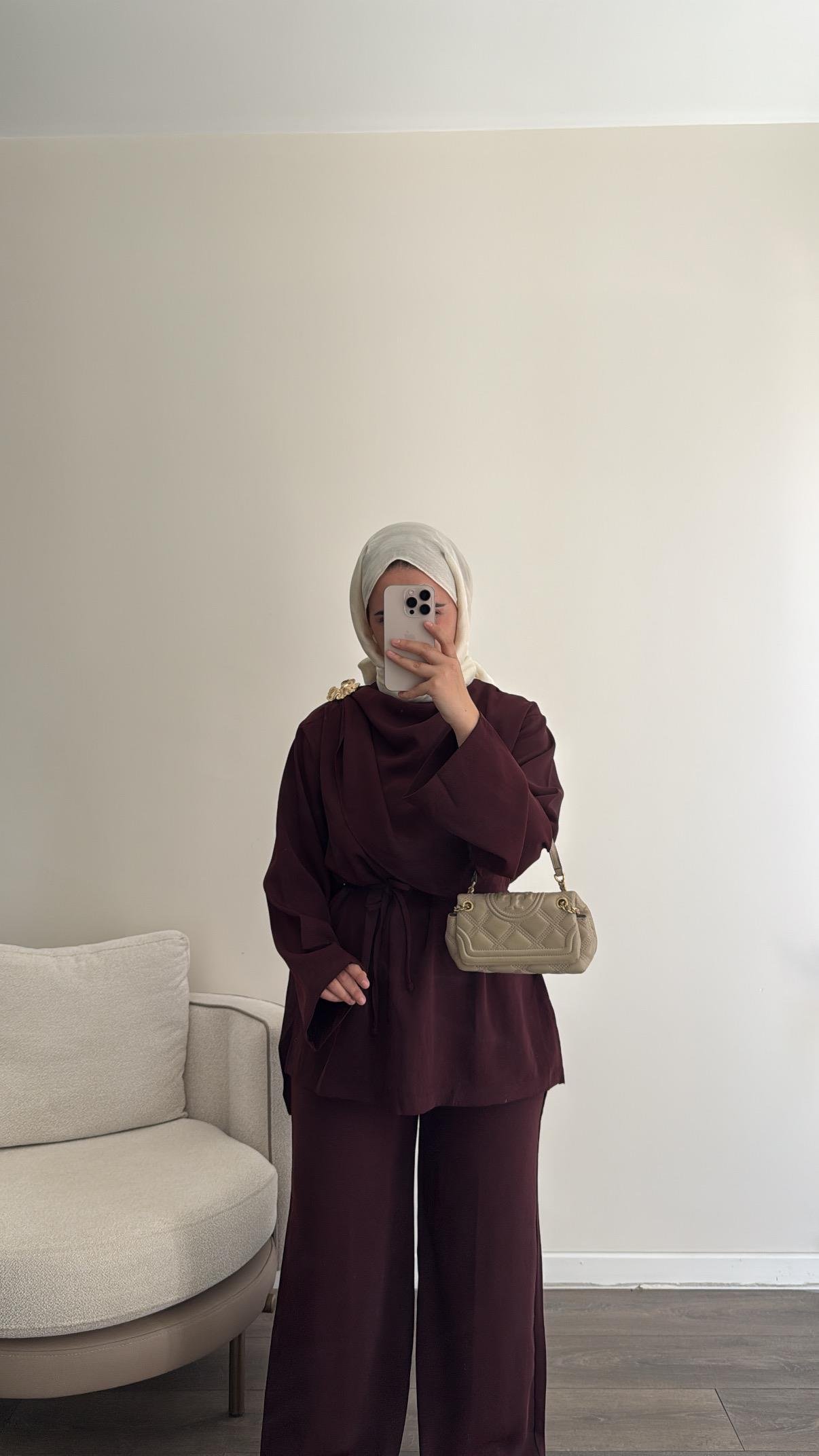 Şal Yaka Detaylı Bordo Pantolon Takım