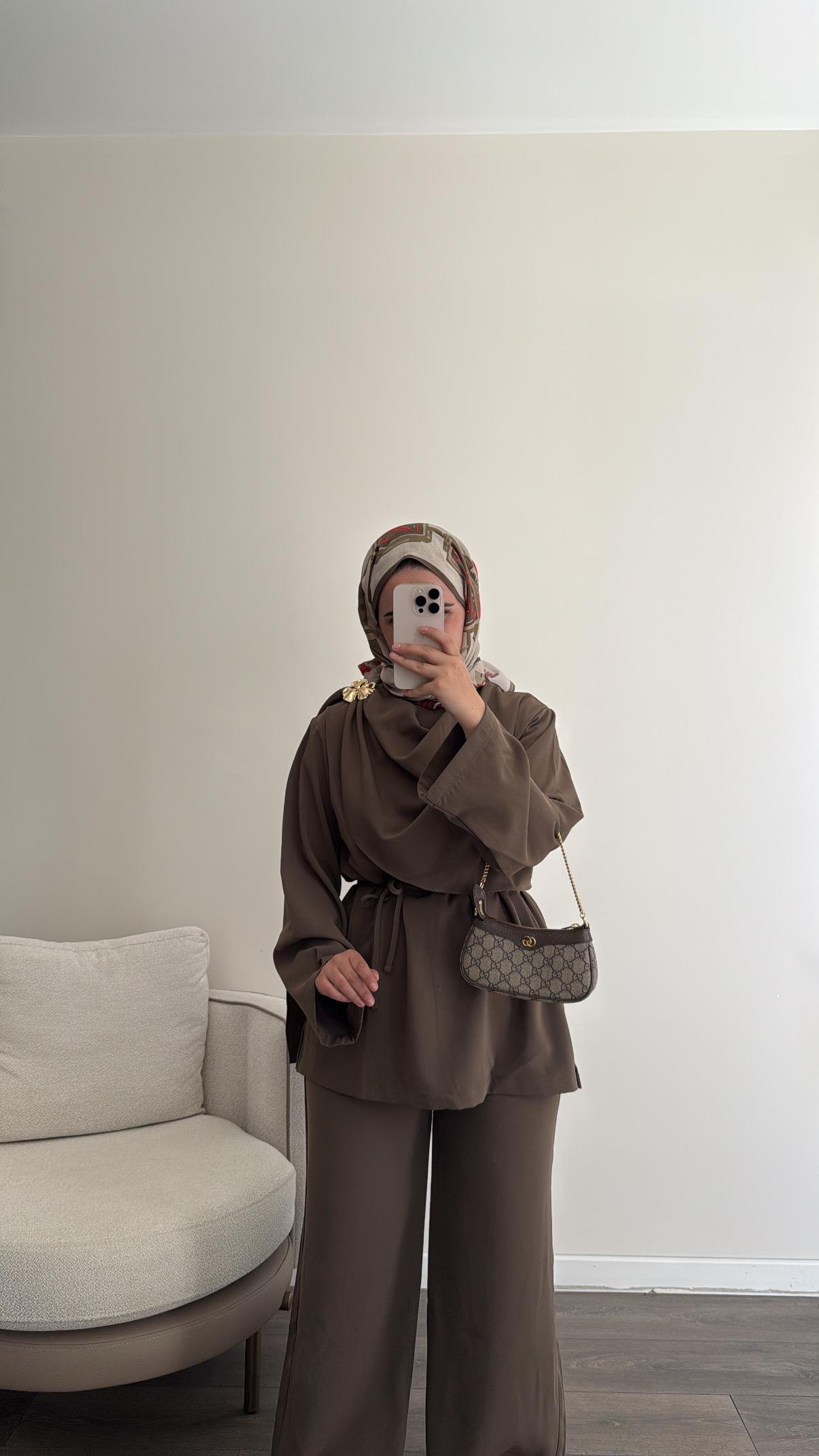 Şal Yaka Detaylı Koyu Haki Pantolon Takım