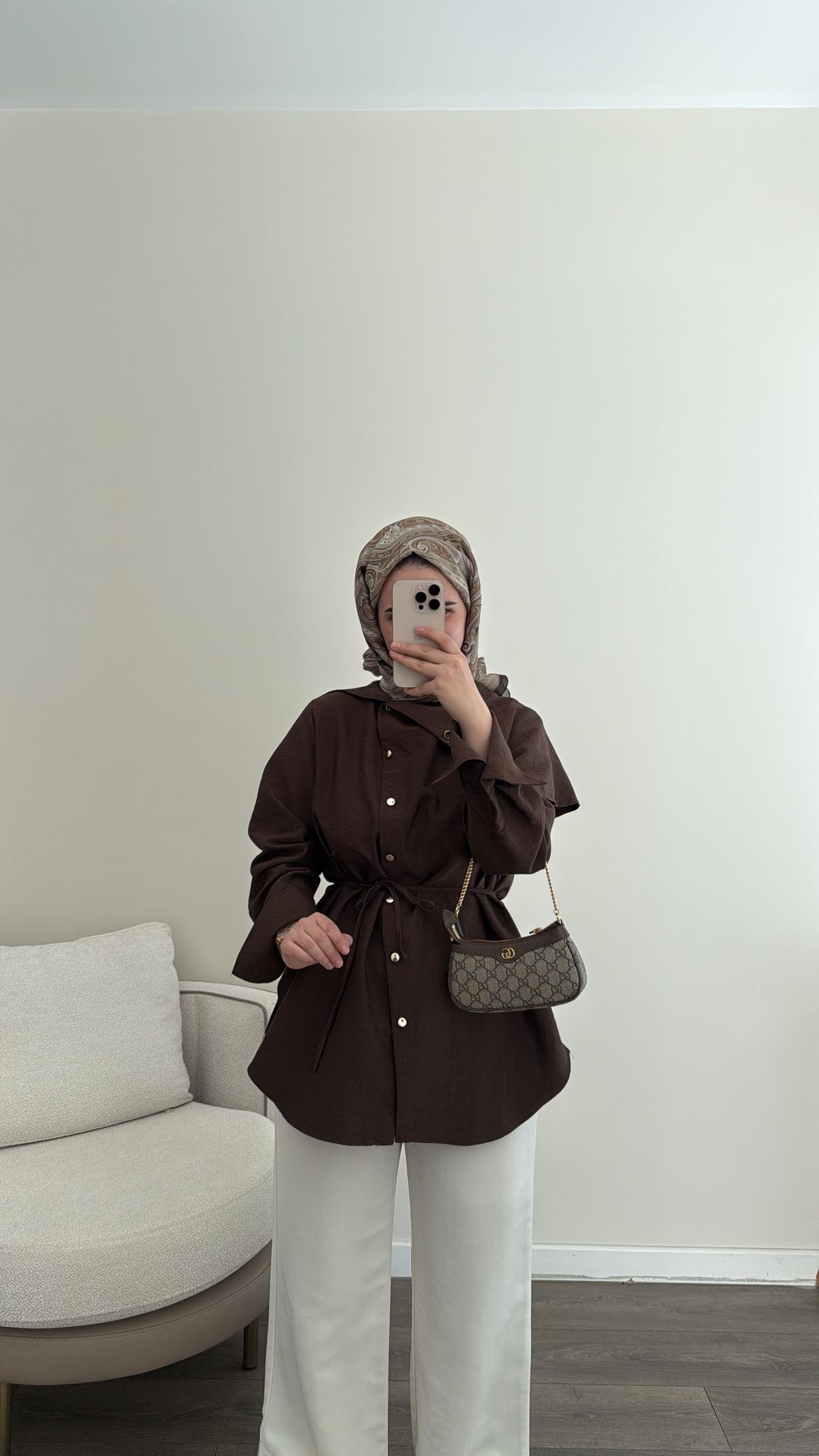 Yandan Düğmeli Gömlek - Kahverengi